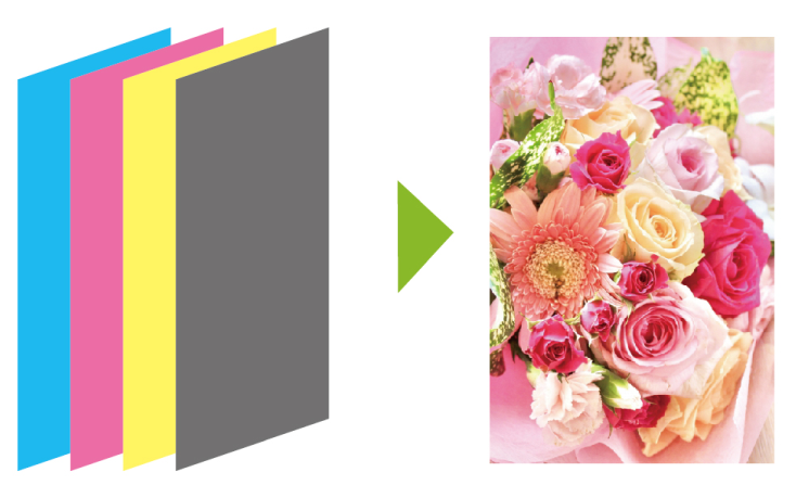 業務用印刷機械(オフセット印刷など)では、一枚の紙に一度だけ印刷するのではなく、使用するインクを1色ずつ、複数回に分けて印刷していきます。